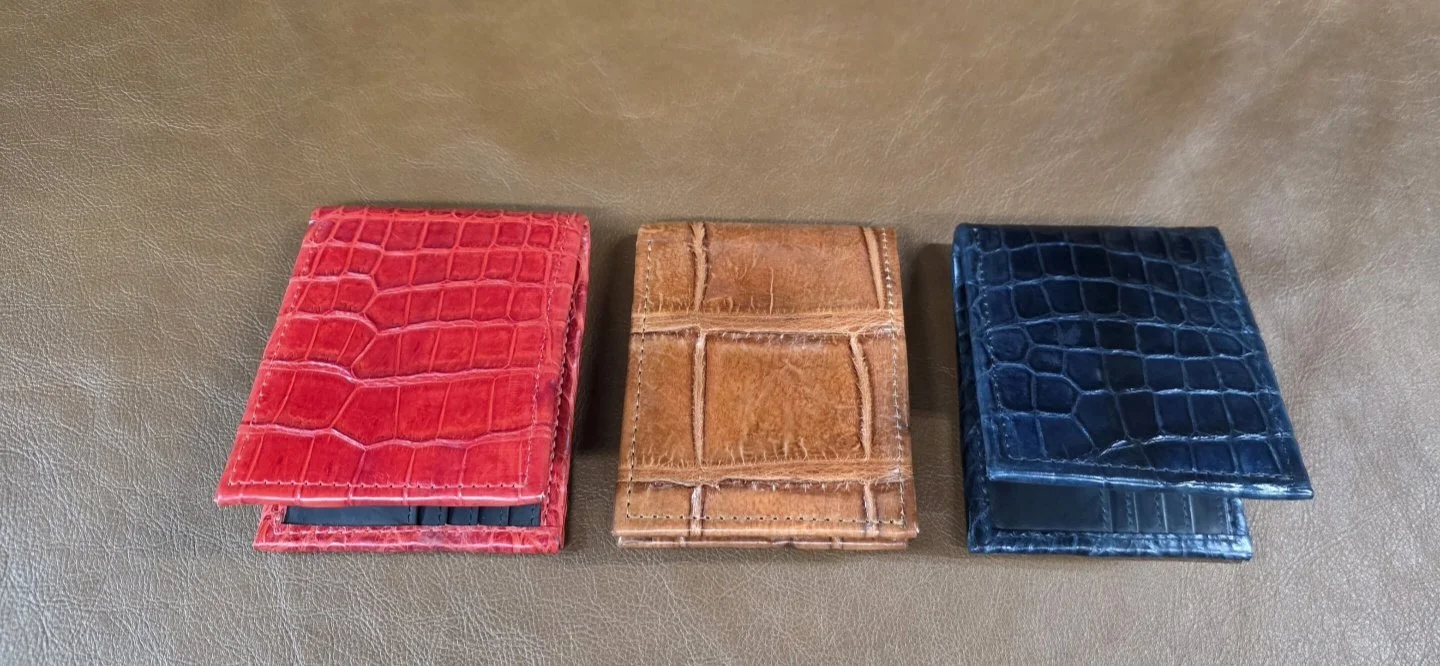 Crafted for those who appreciate true luxury, this wallet features an exterior made from genuine American alligator leather—renowned for its distinctive texture, durability, and timeless elegance. Each piece showcases the natural scale pattern, making every wallet uniquely one of a kind.